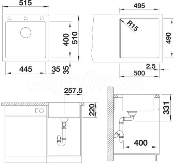 Blanco vstavaný drez PLEON 5 SILGRANIT 51,5x51 cm InFino s excentrom biela 523680