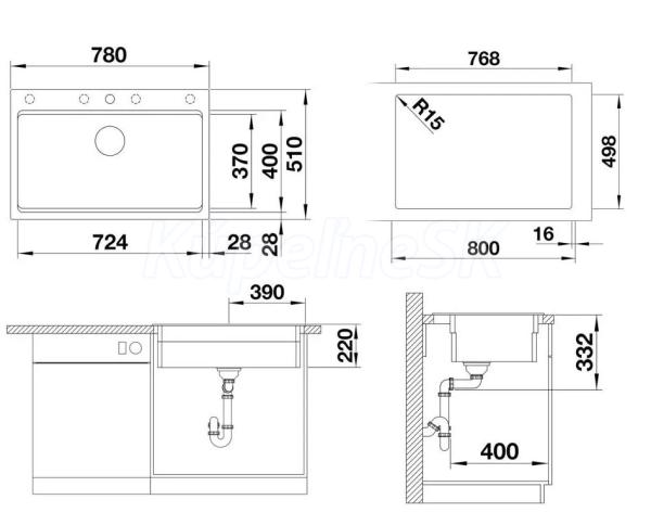 Blanco vstavaný drez ETAGON 8 SILGRANIT 780x510 InFino s tiahlom sivá vulkán