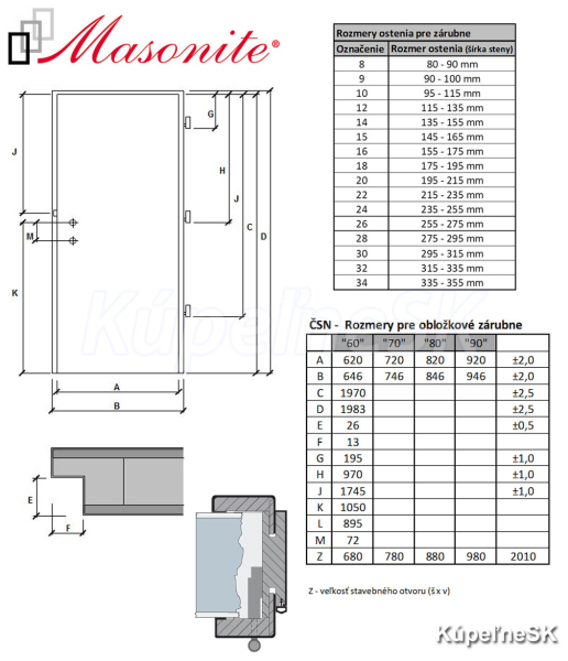 Povrch: MDF rám opláštený HDF doskou s lakované hladké v štandardnej výške 1970mm.