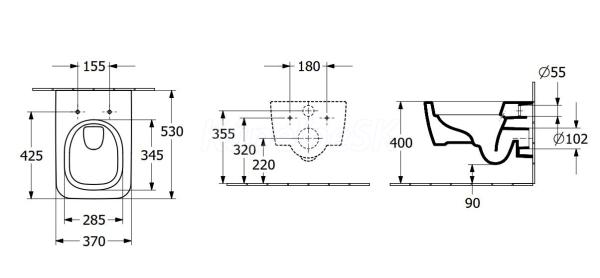 Villeroy & Boch Skyla WC závesné 37x53cm hranaté Twistflush s WC sed. SC CeramicPlus Biela