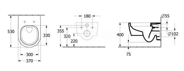 >>  WC-Bidety-dosky-Pisoár  >>  WC závesné  >>  Villeroy & Boch Skyla WC závesné 37x53cm Twistflush s WC sedátkom SC CeramicPlus Alp Biela