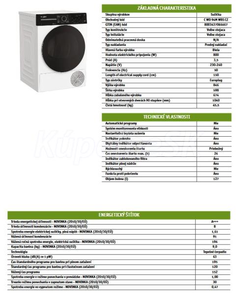>>  Veľké spotrebiče  >>  Práčky a sušičky  >>  Whirlpool C WD 94M WBS CZ voľne stojaca sušička prádla s tepelným čerpadlom 9 kg Biela