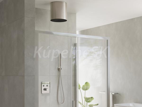 Stropná hlavová sprcha. Vo vyhotovení kefovaný nerez.