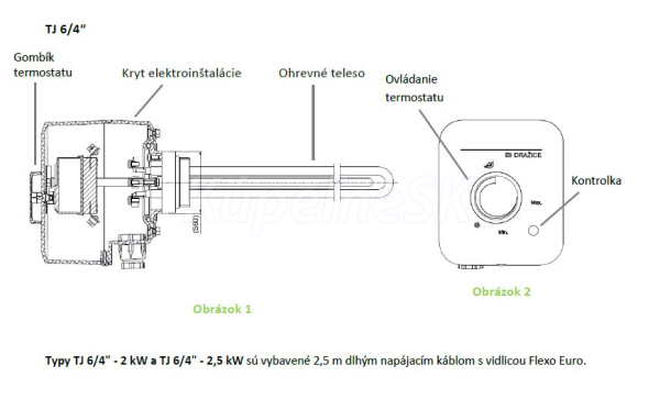 Dražice T/J 6/4“ elektrická výhrevná jednotka závitová s bezpečnostným termostatom 3,3 kW
