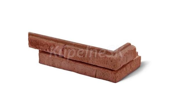 Betónový rohový obklad BRONX 1 v červenom tehlovom odtieni. Súvisiaci produkt obkladu, ktorý vytvára plynulý prechod medzi stenou a vonkajším rohom.