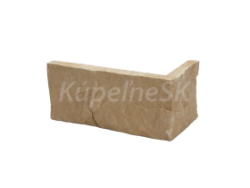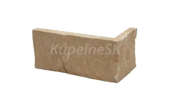 Sadrový rohový obklad ARENA 1 v béžovom odtieni kameňa. Rohový prvok dopĺňa hlavný obklad a vytvára plynulý prechod medzi stenou a vonkajším rohom. Určený do interiéru, bez potreby škárovania.