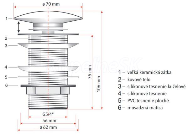 Aquatek Výpusť umývadlová CLICK/CLACK G5/4" bez prepadu, keramická zátka biela vypuklá K703