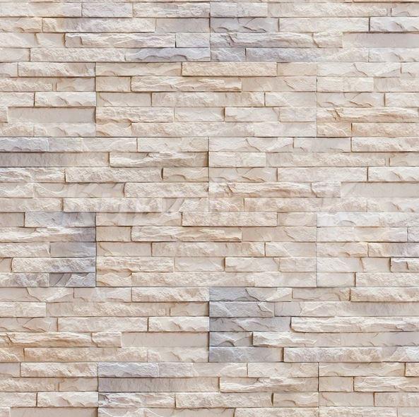 Sadrový obklad HAMPTON 1 v béžovom odtieni vytvára jemný kamenný efekt bez škárovania.