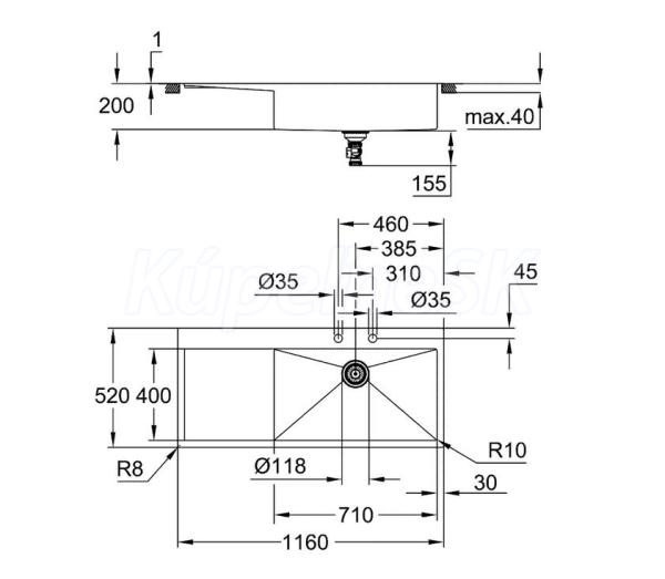>>  KUCHYNE - Kuchynský tovar  >>  Kuchynské drezy  >>  Nerezové drezy  >>  Grohe K1000 nerezový drez 116x52 cm s automatickým odtokom brúsený Nerez Ľavý