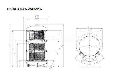 Qtermo Energy PSRR 1500 - 100 AKU V2 Stacionárna akumulačná nesmaltovaná nádrž 1500L, s 2 výmenník., 100mm izolácia, AKU PSRR