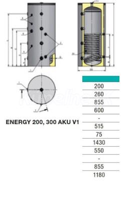 Qtermo Energy 200 AKU V1 Stacionárna akumulačná nesmaltovaná nádrž 200L, neodnímateľná izo