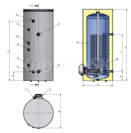 Qtermo ENERGY E 500 SDV1/0 Stacionárny kombinovaný smaltovaný ohrievač 500 L, pre tepelné čerpadlá, neodním. s izoláciou, 1x výmenník, S = 5,06m2, (3x3kW),SDV1