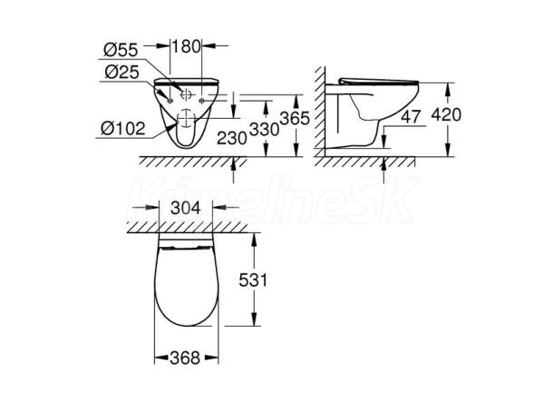 Závesné WC GROHE Bau Ceramic predstavuje ideálny spôsob vylepšenia vašej kúpeľne. Tento nástenný klozet je navrhnutý v striedmom štýle a čistých štíhlych líniách a je vybavený doskou a vekom s funkciou tichého zatvárania, ktorá je vhodná pre rodiny s deťmi a zaisťuje ich pomalý a plynulý pohyb, takže nedochádza k búchaniu a zachycovaniu prstov detí. Rýchloupínacia funkcia dosky uľahčuje čistenie každého rohu misy – doska je k mise pripevnené pomocou kĺbu, ktorý je možné rýchlo odpojiť. Ľahko udržiavateľná misa bez okrajového splachovacieho kruhu nedáva baktériám priestor, kam by sa schovali, a zaručuje lepší výkon splachovania. Toaleta ponúka vodorovné odpadové koleno a objem spláchnutia 6 a 3 litre.
