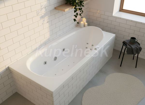 • Materiál: Vana je vyrobena z vysoce kvalitního akrylátu a po vytvarování vyztužena sklolaminátem. Díky tomu má vysokou pevnost při nízké hmotnosti, je stálobarevná (povrch zůstává bílý) a má výborné izolační vlastnosti, takže si voda udrží teplotu delší dobu.