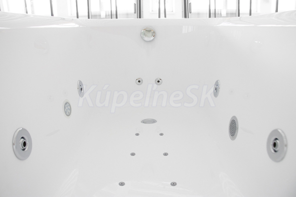 • Objem: 183 litrů při maximálním napuštění (vanu není potřeba napouštět do jejího plného objemu, pro použití masážních trysek stačí vanu naplnit po horní hranu nejvýše položených trysek).