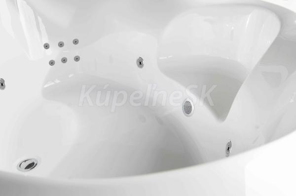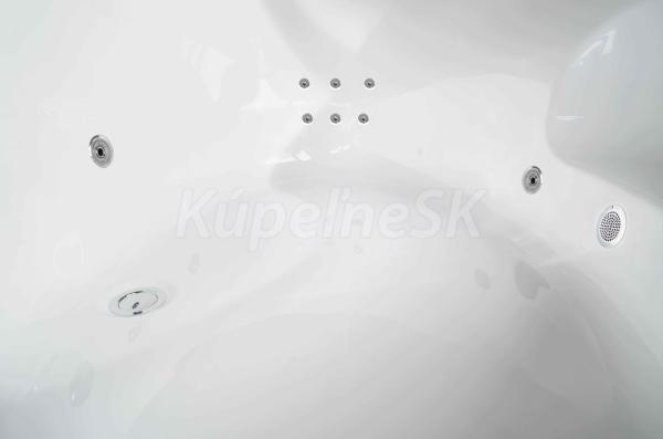 • Objem: 183 litrů při maximálním napuštění (vanu není potřeba napouštět do jejího plného objemu, pro použití masážních trysek stačí vanu naplnit po horní hranu nejvýše položených trysek).