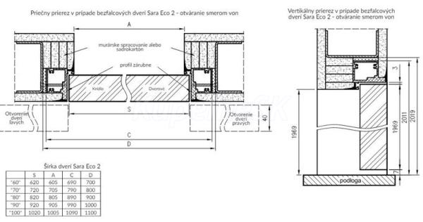 DRE Sara Eco 2 pre dvere DTD SK-norma skrytá bezfalcová zárubeň s 3 pántami