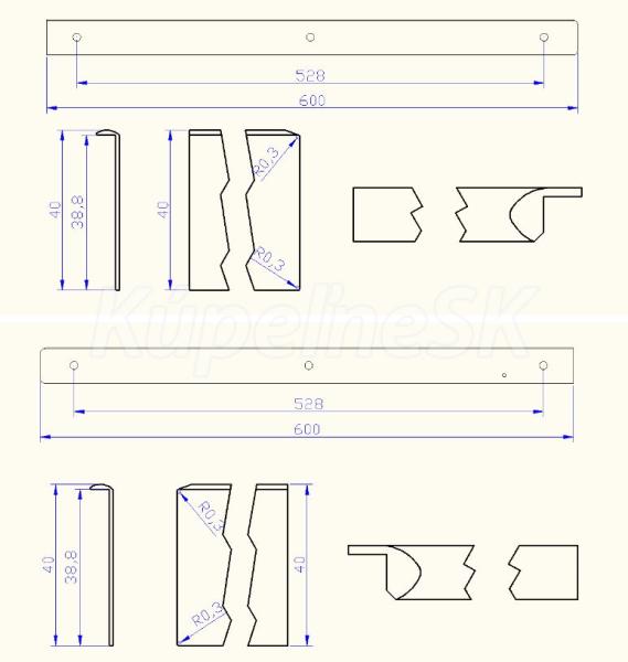 Strong unkočovacia lišta pre pracovnú dosku 38 mm "0" rádius dĺžka 600mm Ľavá Čierna matná