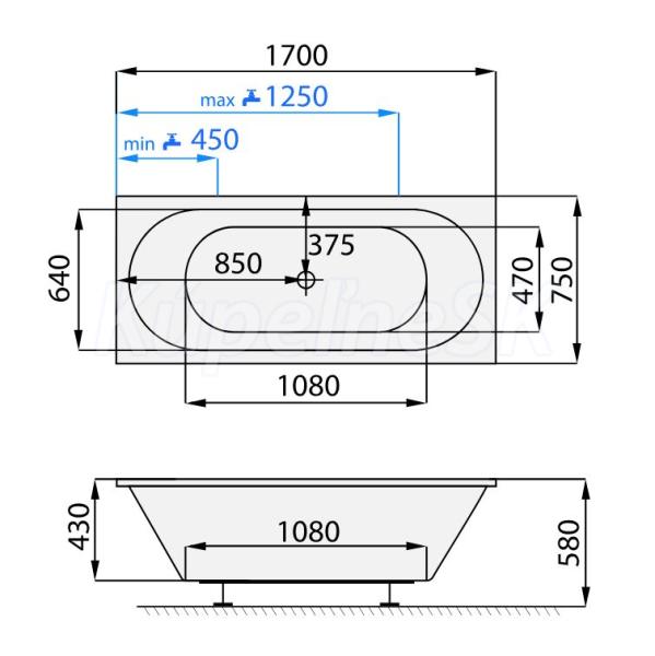 Rozmery vane: 1700x750mm Objem vane: 200 l